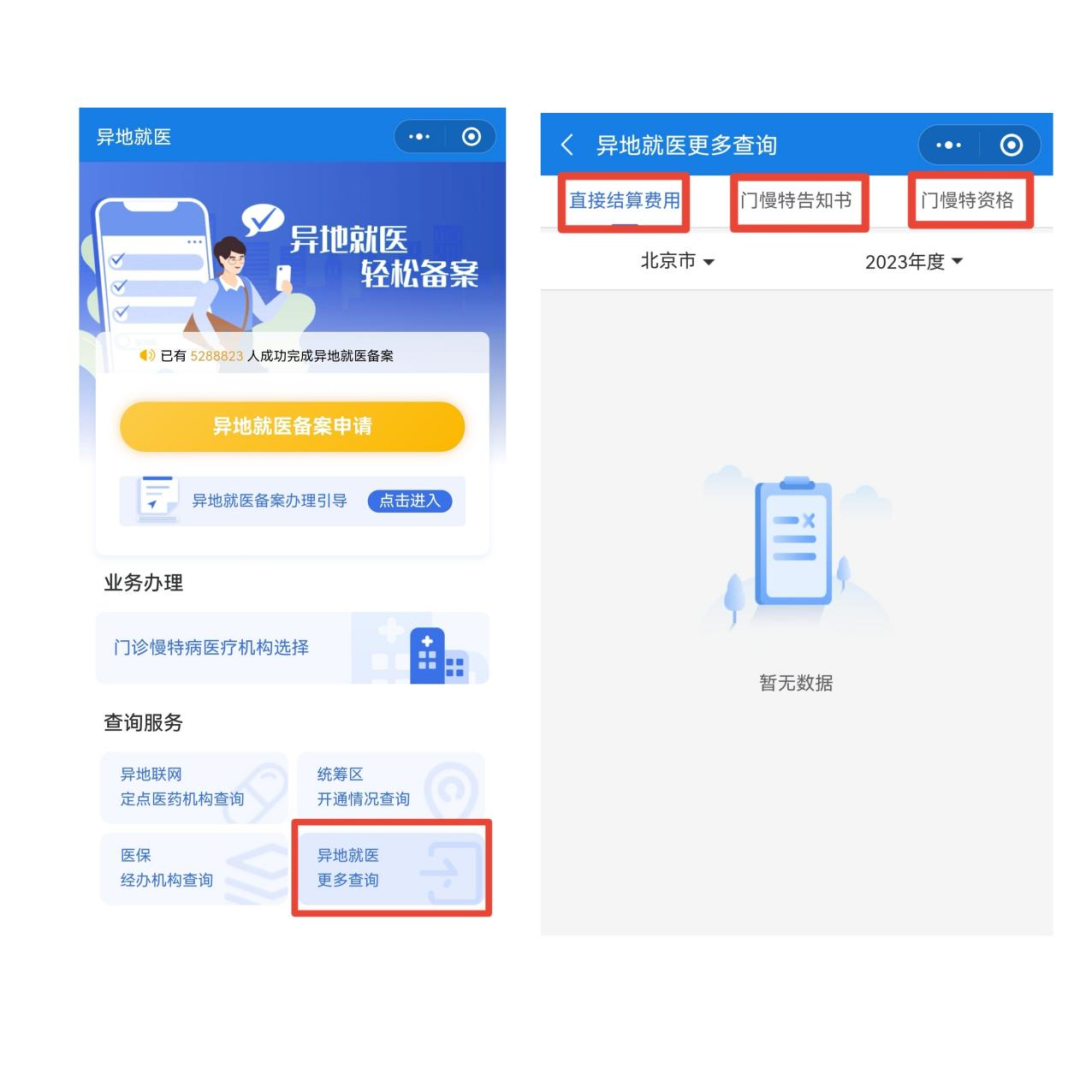 园区参保人员异地就医欲享受医保待遇直接结算服务的,须提前办理异地就医挂号手续。为进一步满足患者异地就医需求,减少患者奔波报销。2022年6月30日,国家医保局、财政部印发《关于进一步做好基本医疗保险跨省异地直接结算工作的通知》 《通知》)《通知》明确长期跨省异地居住或临时跨省外出就医的参保人员,经备案后可享受异地就医直接结算服务。截至2023年5月,开发区政务服务中心已办理异地就医备案4500件。为了给参保人提供独立、更便捷的服务,异地就医备案,实现了掌上零出行服务。符合条件的参保人只需简单几步,即可完成跨省、异地就医备案,实现异地就医直接结算。