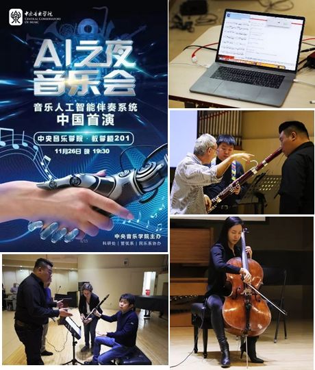 2018年11月,中央音乐学院独奏家与美国AI“管弦乐团”联合演出了12首中外作品。 这是音乐人工智能伴奏系统在国内的首次亮相。 本次演出是中央音乐学院与印第安纳大学信息计算与工程学院联合建立的“信息学爱乐乐团”实验室的重要成果。