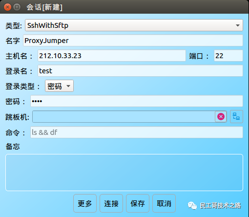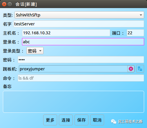 步骤1:创建与跳板机的连接信息。 这个创建和普通的服务器创建没有什么不同。