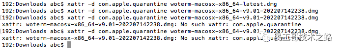 xattr: woterm-macosx-x86_64-xxx.dmg: No such xattr: com.apple.quarantine