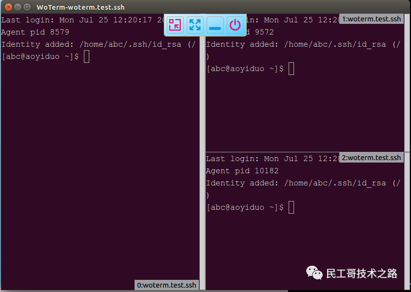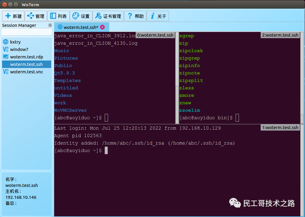 所有与终端相关的窗口都支持窗口分割,并且支持任意数量的水平或垂直窗口分割。 SSH类型的窗口分割是一种连接复用模式,以减少登录次数。