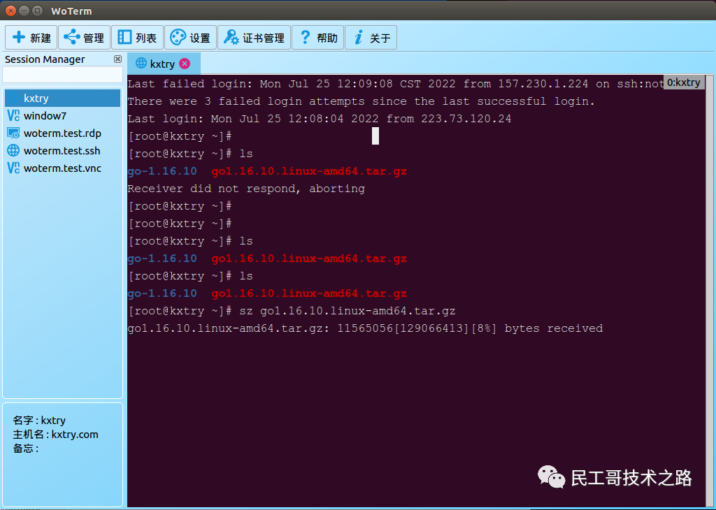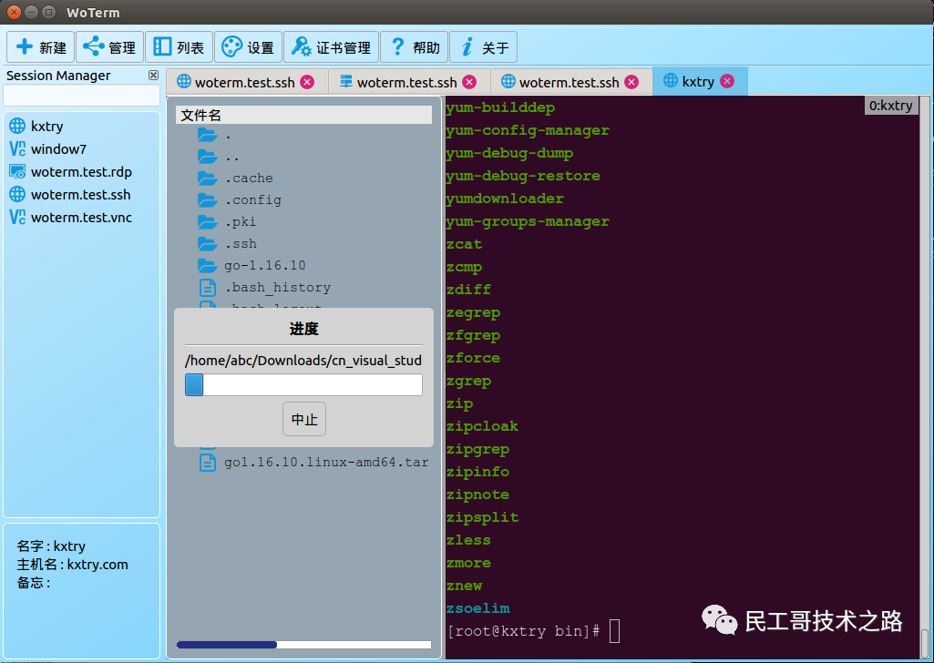 终端方面,总共支持两种方式,分别是SFTP和ZModem。 SFTP传输效率最高,ZModem可以轻松突破多层跳板机和基础机的限制。
