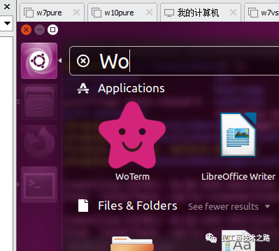 在Ubuntu系统中,正常情况下,在Lancher面板中,可以看到对应的快捷启动方法,如下图: