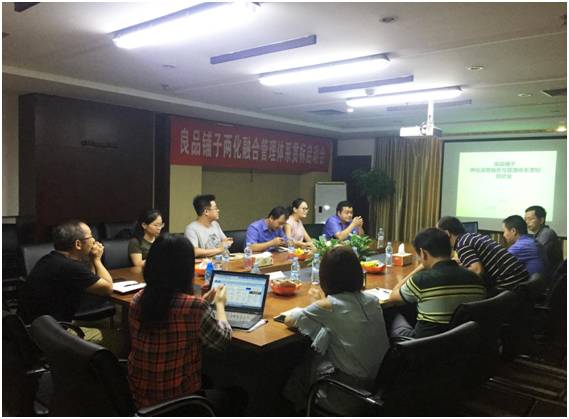 湖北良品铺子食品有限公司两化融合管理体系贯标启动大会日前在武汉科技大厦10楼会议室召开,良品铺子CEO杨银芬和相关高层管理人员及凌云交汇集团咨询代表参加会议。良品铺子信息中心负责人朱淑祥主持会议。
