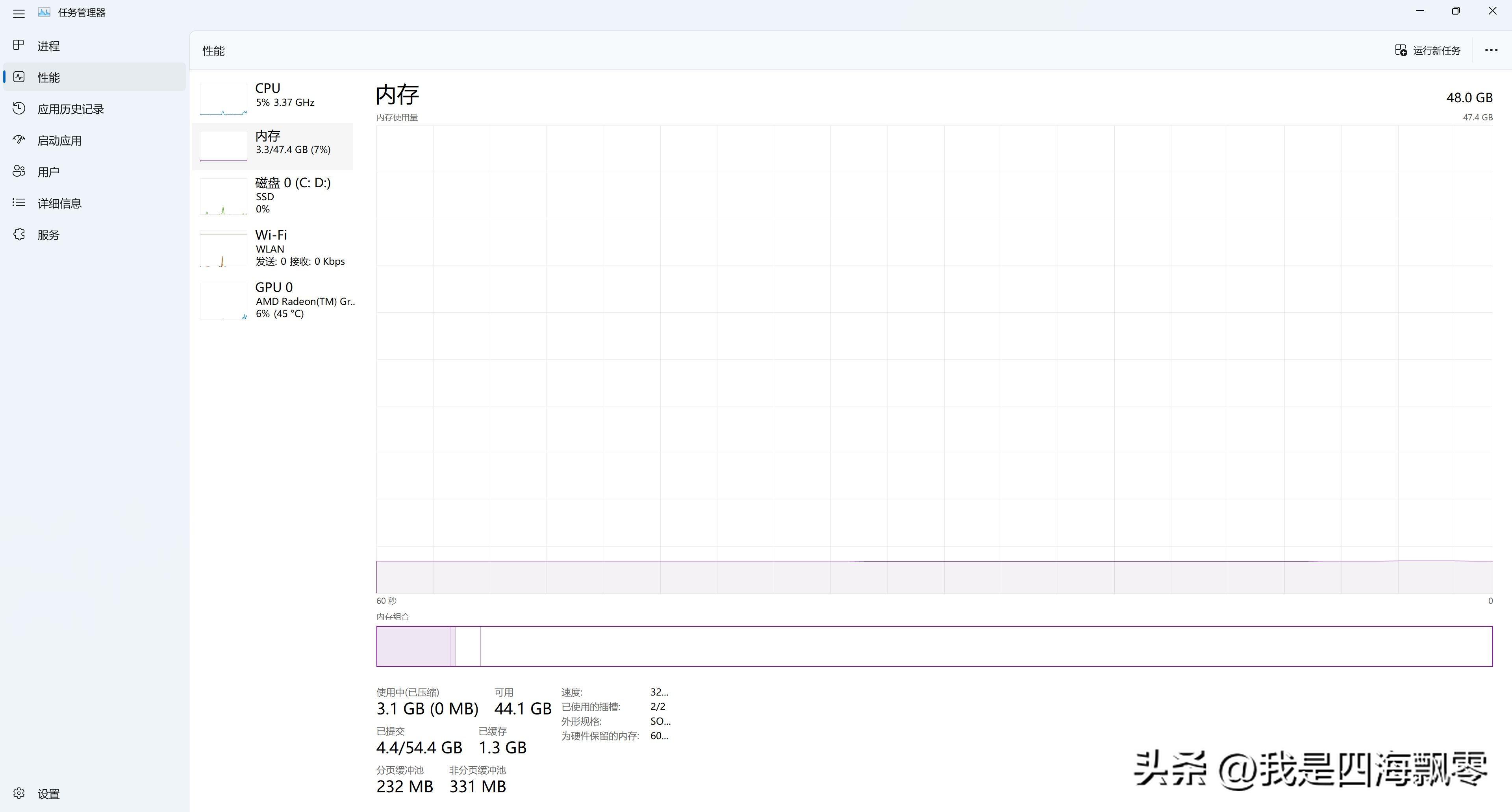第二天上班在IT部的备件库里找了一根16GB的联想DDR4 3200MHz笔记本内存,替换掉原来8GB的三星DDR4 3200MHz笔记本内存,再插上去这根32GB的金百达(KINGBANK)DDR4 3200MHz笔记本内存。这下惠普战66五代AMD锐龙处理器也能正常识别到32GB的内存条了,说明内存条并没有问题。最终系统识别出了16GB+32GB两根内存,系统内存总容量:48GB。