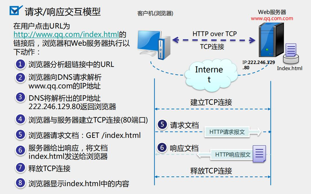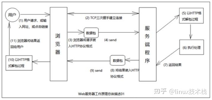 上面这张图,将一次Web服务的工作流程过一遍,我们假设以浏览器作为客户端